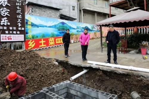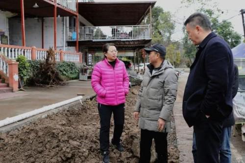 宋莉(右2)現(xiàn)場了解截污干管鋪設(shè)情況